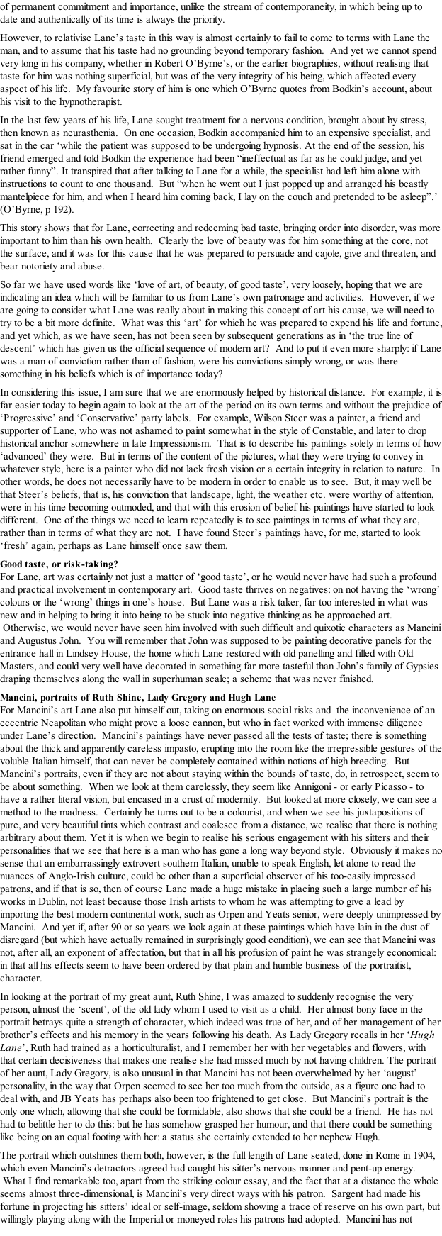 Writings about art by David Thistlethwaite Continued Continued from Sir Hugh Lane and the Legacy of his Beliefs
