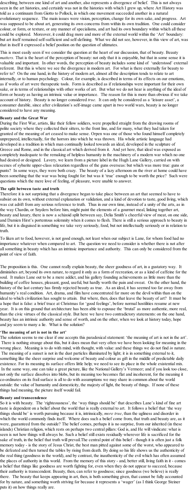 Writings about art by David Thistlethwaite Continued from Sir Hugh Lane and the Legacy of his Beliefs page 3 Final page